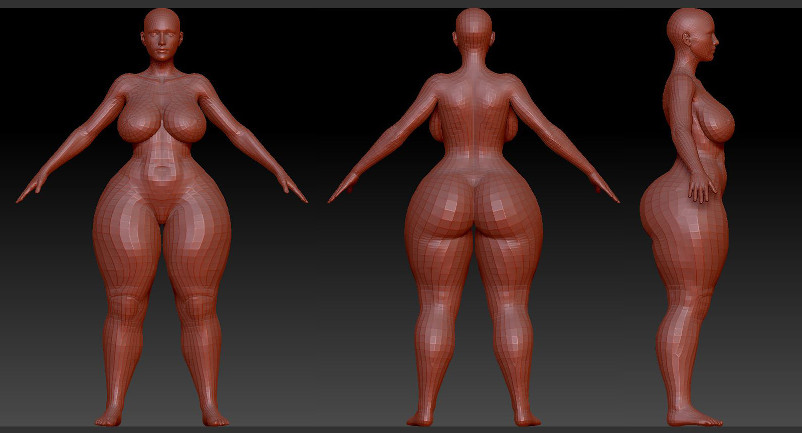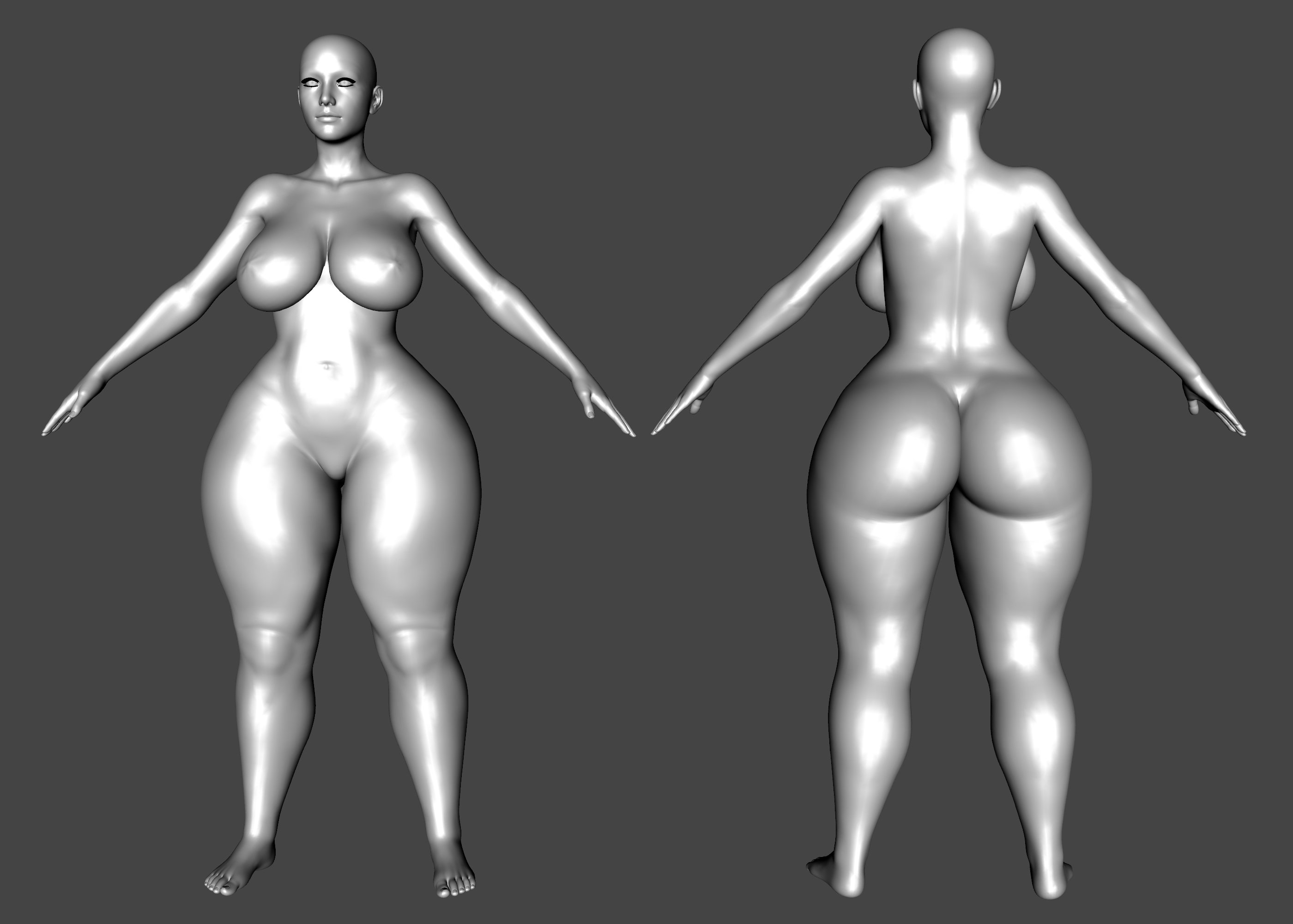 A custom Zbrush sculpted unique realistic looking female body shape,