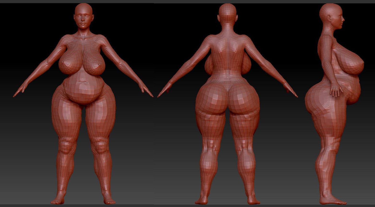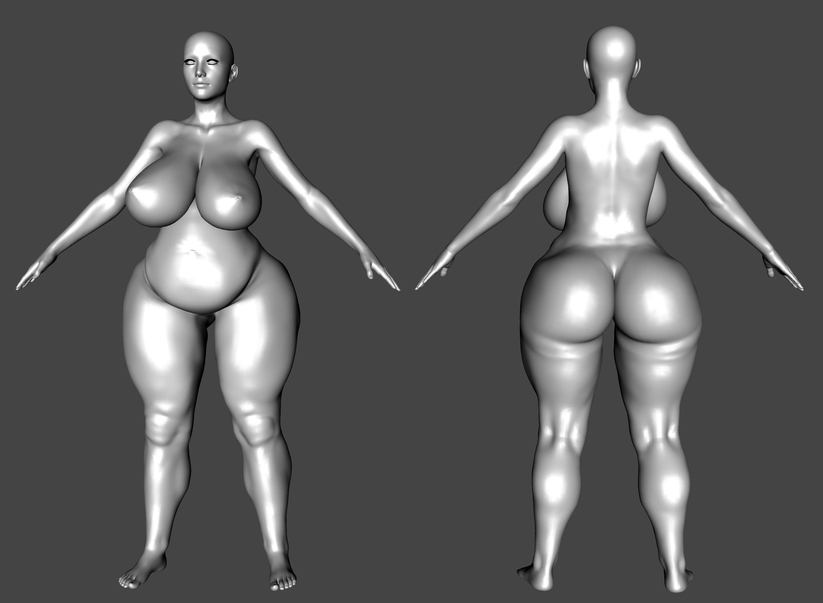 A custom Zbrush sculpted unique realistic looking female body shape,